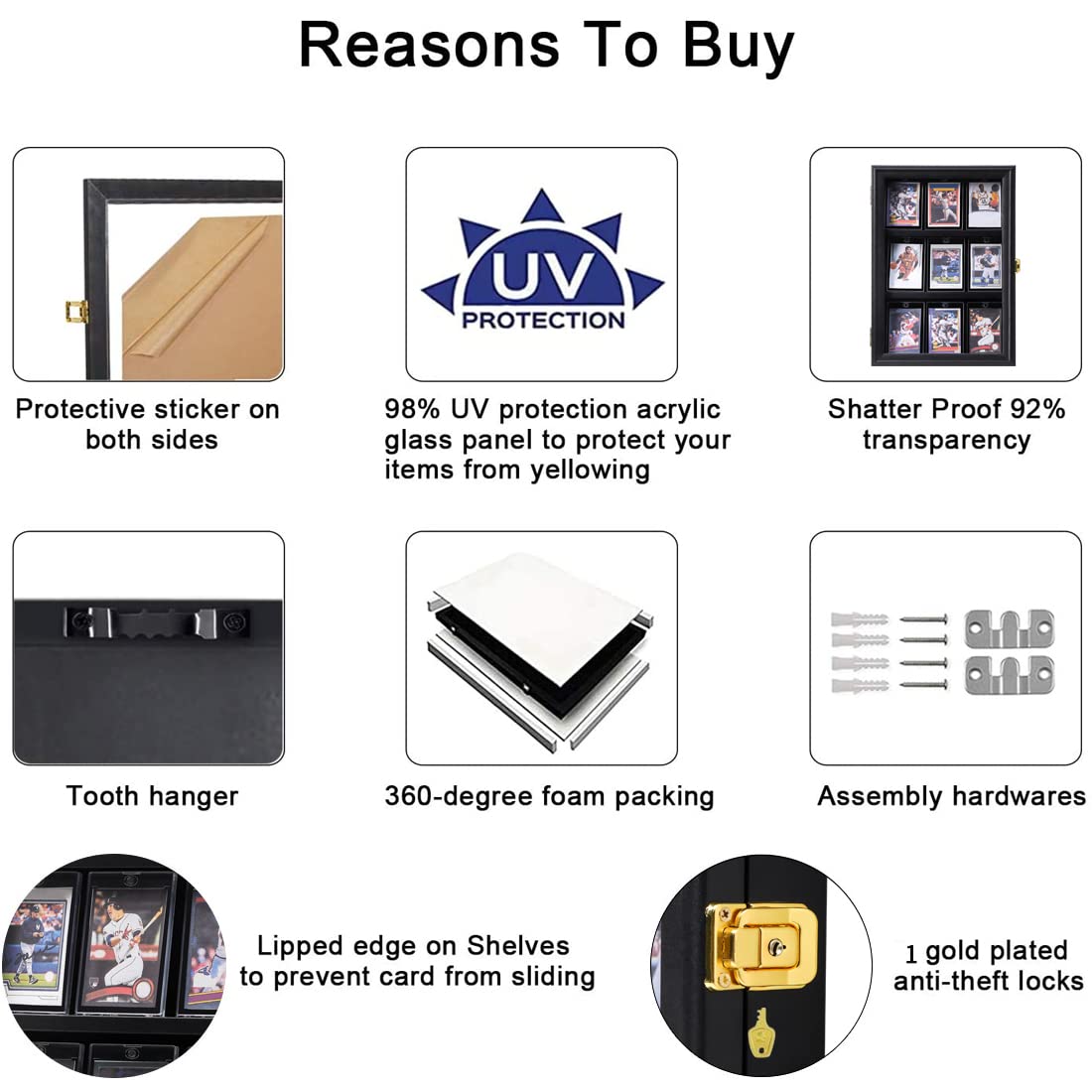 - 【SAFE PACKING】 - Surrounded 360 degree by foam to get a full protection for the fragility of the glass card frame display case.Thick protective sticker on acrylic glass panels ensures scratch free when transit to your home.