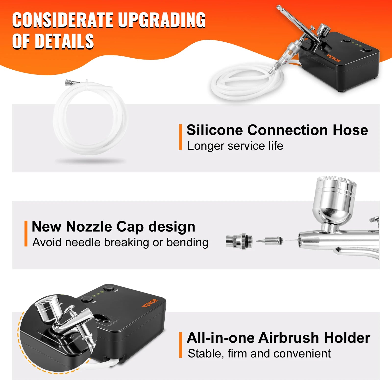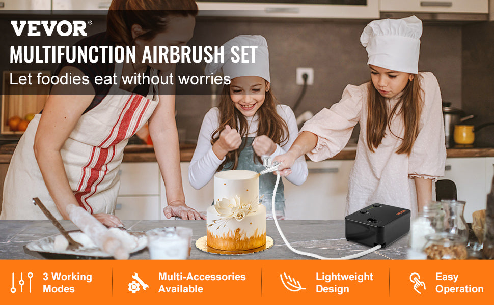 VEVOR Dual-Action Airbrush Kit Multifunctional Airbrush System Compressor 0.3mm Spray Gun for Cake Painting Nail Makeup Model
