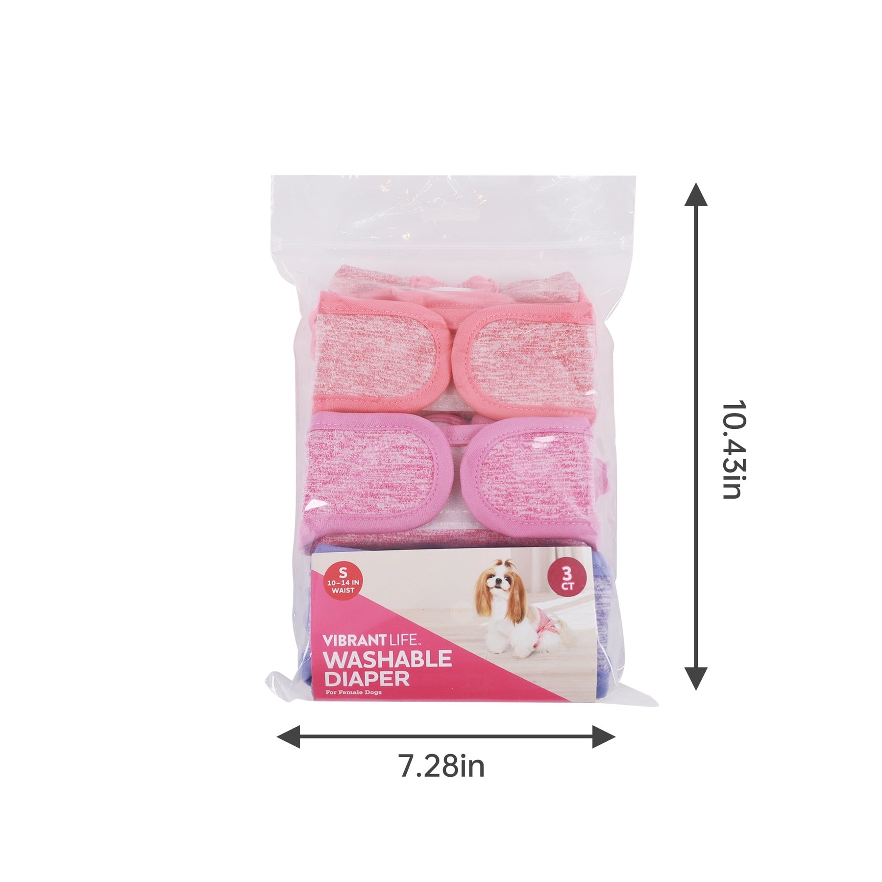 Vibrant Life Washable Dog Diapers for Female Dogs, S, 3 Count