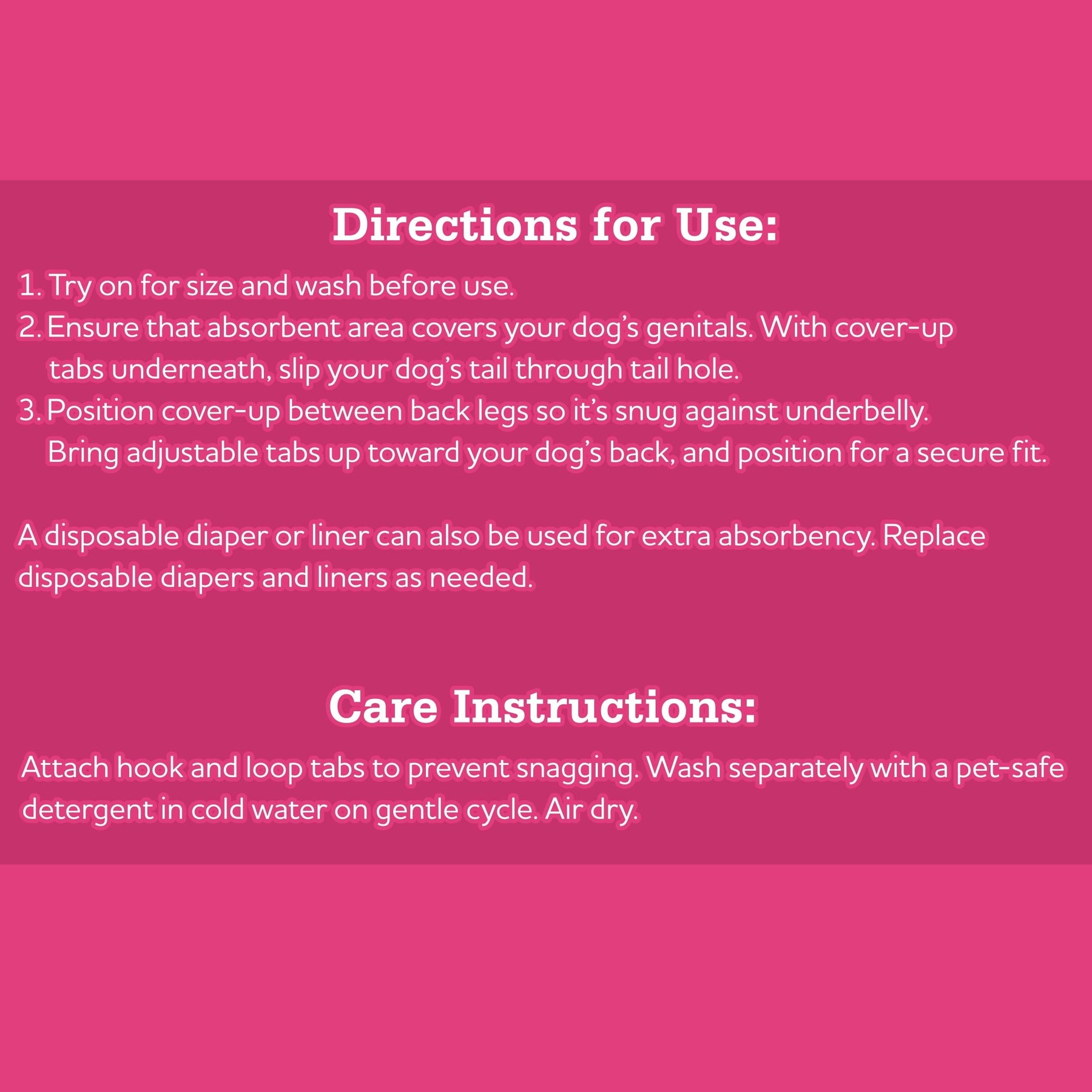 • Maximum comfort and protection during their heat cycle or for dogs suffering from incontinence