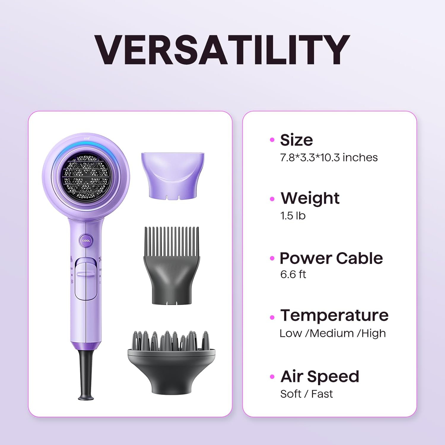 - 2x faster drying: Powered by a robust 1875W motor and advanced aerodynamic design, this ionic hair dryer delivers high-speed airflow to dry your hair twice as fast. Spend less time drying, avoid overheating, and minimize damage—all while achieving effortlessly sleek results.