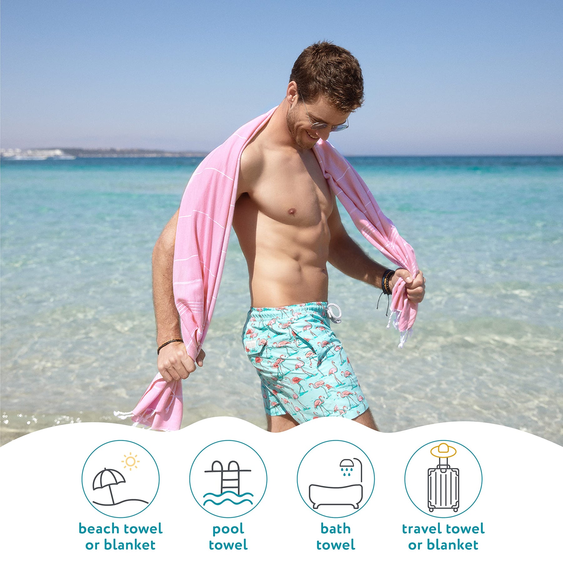 WETCAT Turkish Beach Towel Oversized 38x71 100% Cotton Sand Free Quick Dry Extra Large Light Travel Towel for Adults Beach Accessories Gifts - Light Pink