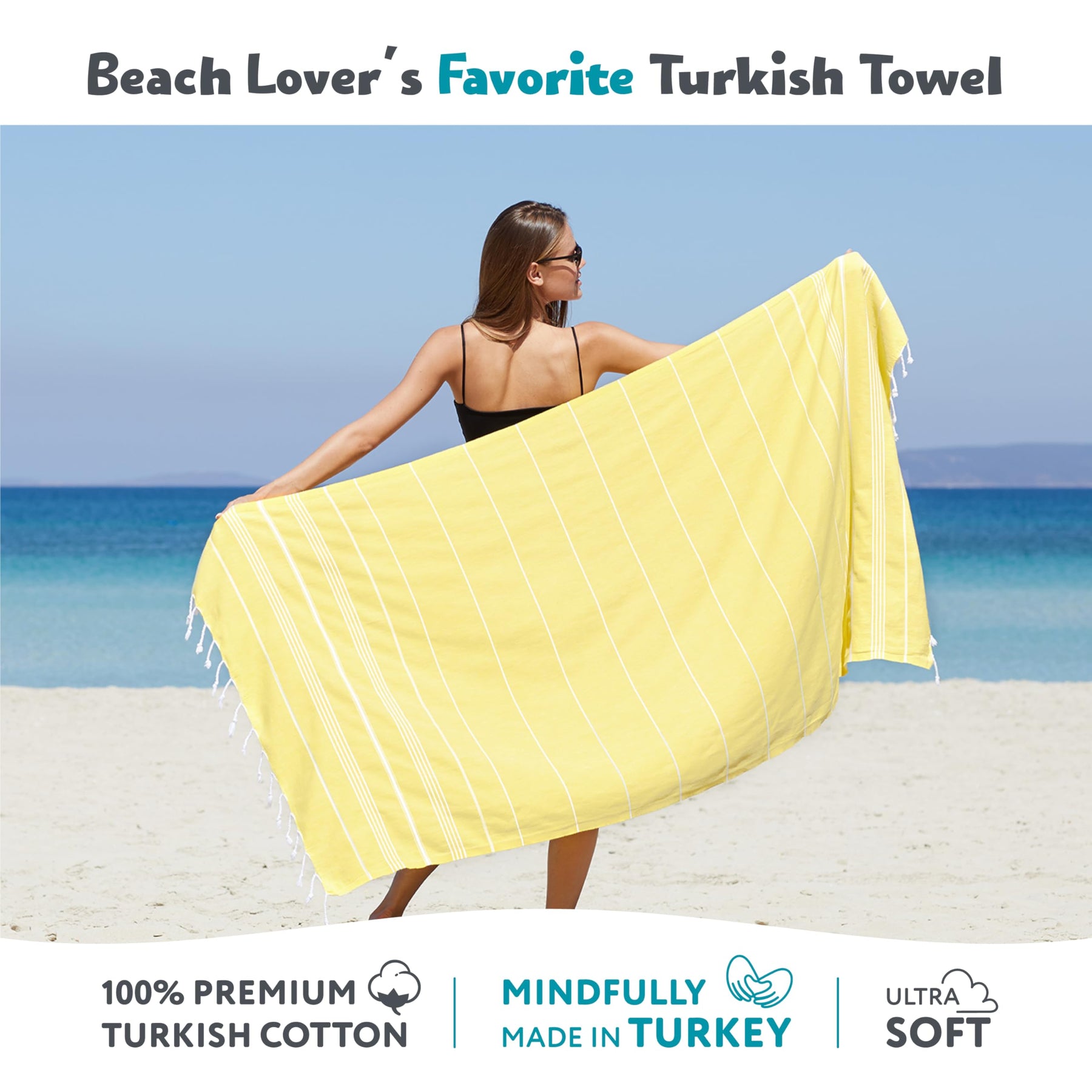 - GREAT ON-THE-GO: Thinner than terrycloth but just as absorbent, our Turkish Towel is a must-have after your shower. Super-convenient to pack and carry, it’s non-bulky for easy travel. Compact and lightweight, it folds down to maximize space in your luggage or closet.