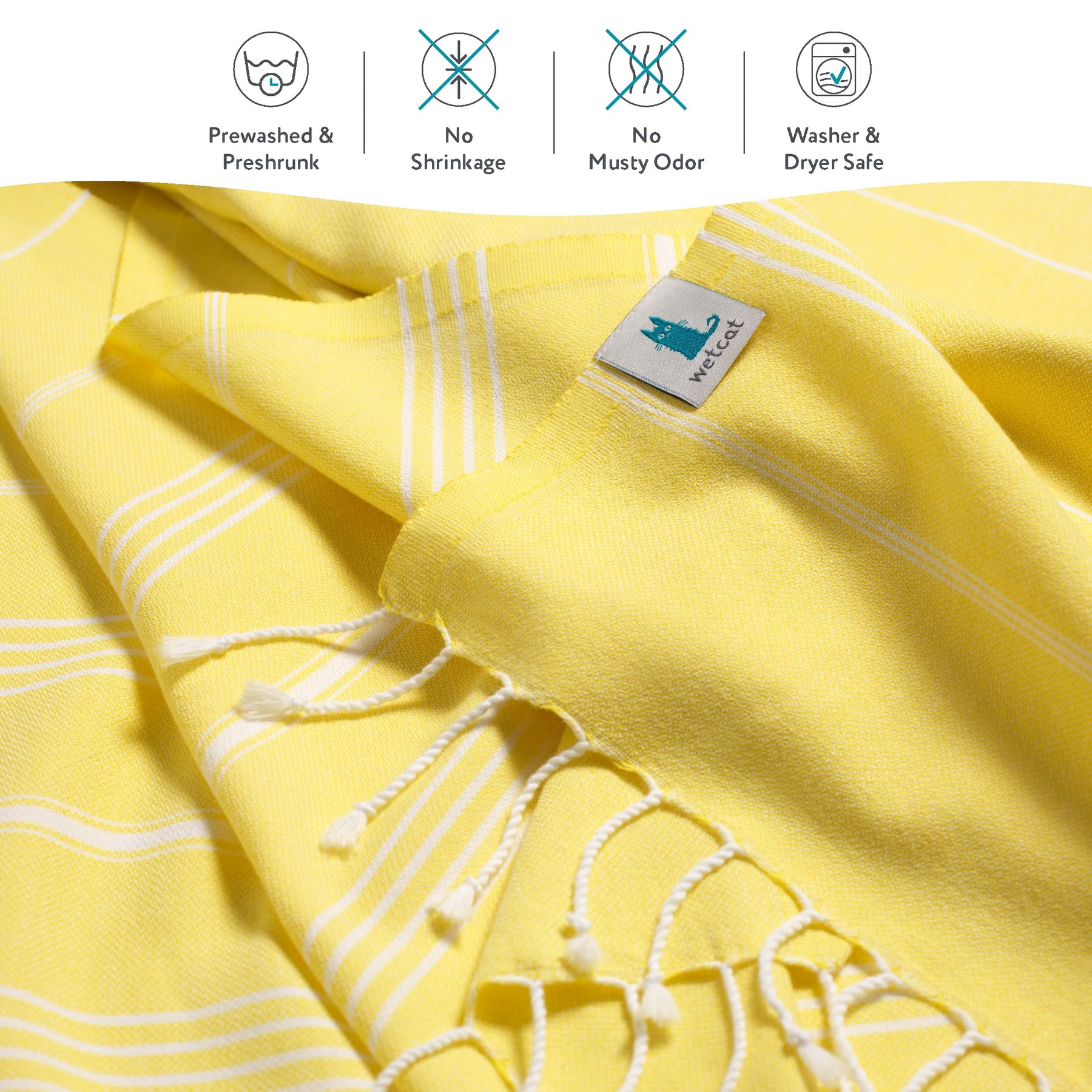 - QUALITY YOU CAN FEEL: Who wants a stiff, scratchy Turkish beach towels? At Wetcat, our fabric is prewashed for an unbelievably soft texture. Made in Turkey with OEKO-TEX certified natural dyed yarn, our decorative Turkish towels are safe for you and for the environment.