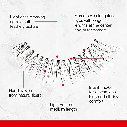 - Featherlight Signature Wispies: Features light and natural-looking black fibers for the most comfortable and real-like lash look; medium-length fibers carefully tapered to tips; delivers subtle volume and drama perfect for adding sophistication to your look and not going overboard; designed with shorter hairs in the inner corners fanning out to the outer corners; great for prepping up a sultry cat-eye look; semi-clustered ideal for trimming and customization; crafted with Ardell's famous Invisiband for unmatched comfort and seamless lash finish