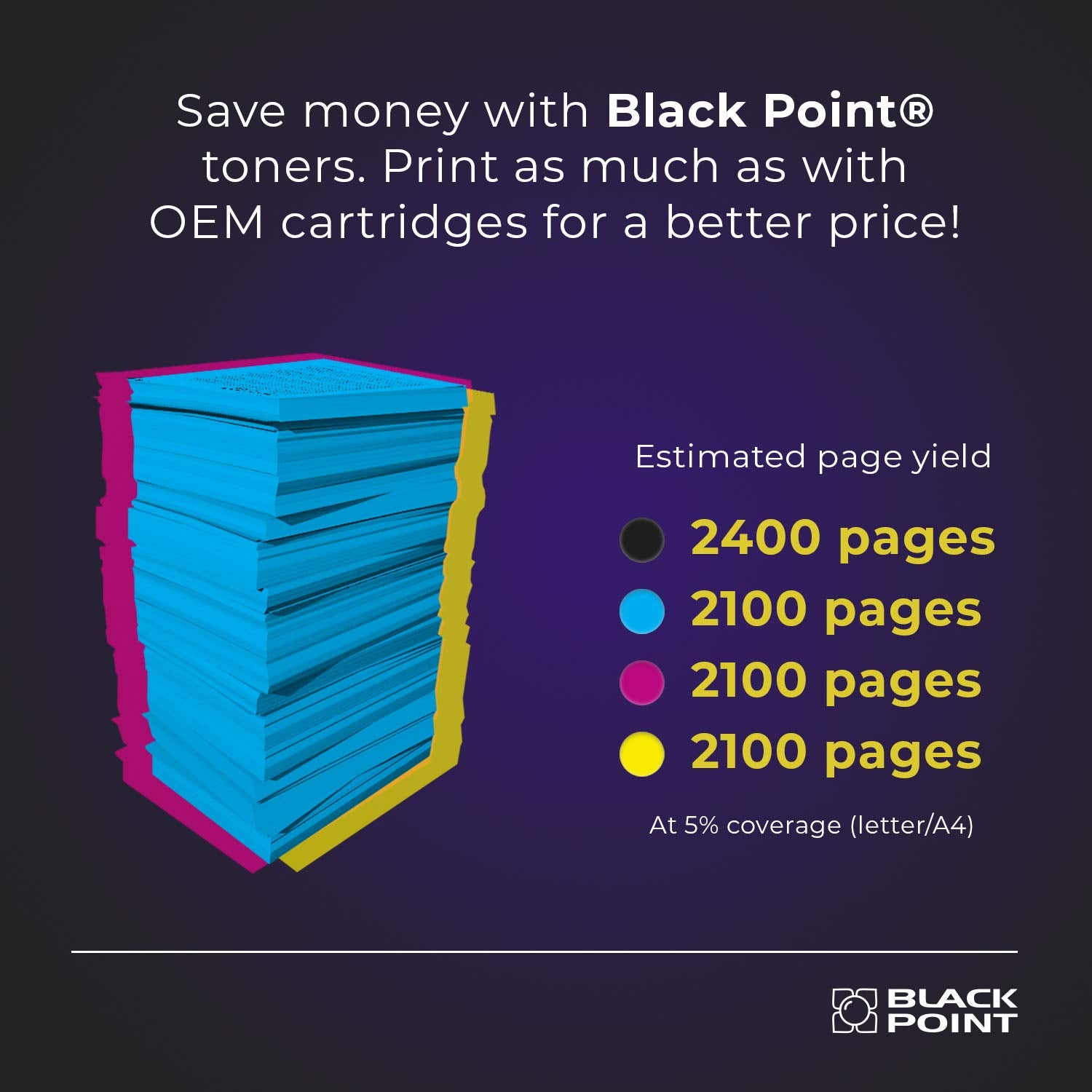 - ✔ High performance and print quality – with Black Point toner you can print 2400 pages (black) and 2100 pages (cyan, magenta, yellow), which offers you the same performance as OEM toners at a much cheaper price - confirmed by tests according to international standards ISO 19752, 19798, 24711. A special original formula for Black Point ink guarantees excellent print quality on every printed page