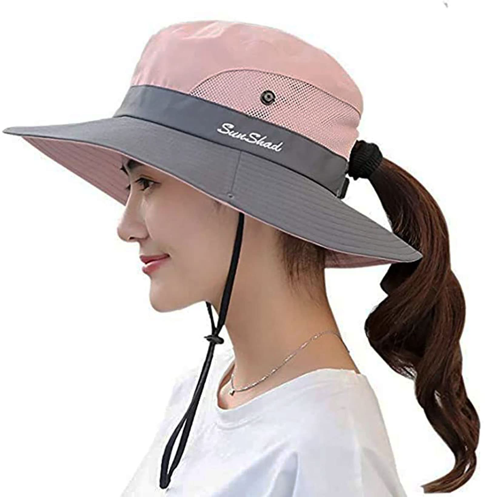- Functional and versatile:The brim is large enough to shade forehead. Inside of the hat is a breathable mesh layer, which can greatly improve cooling, comfortable and airflow. Especially, a ponytail opening in back is considerate design for women. The buttons on both sides of the hat can give you more different styles.