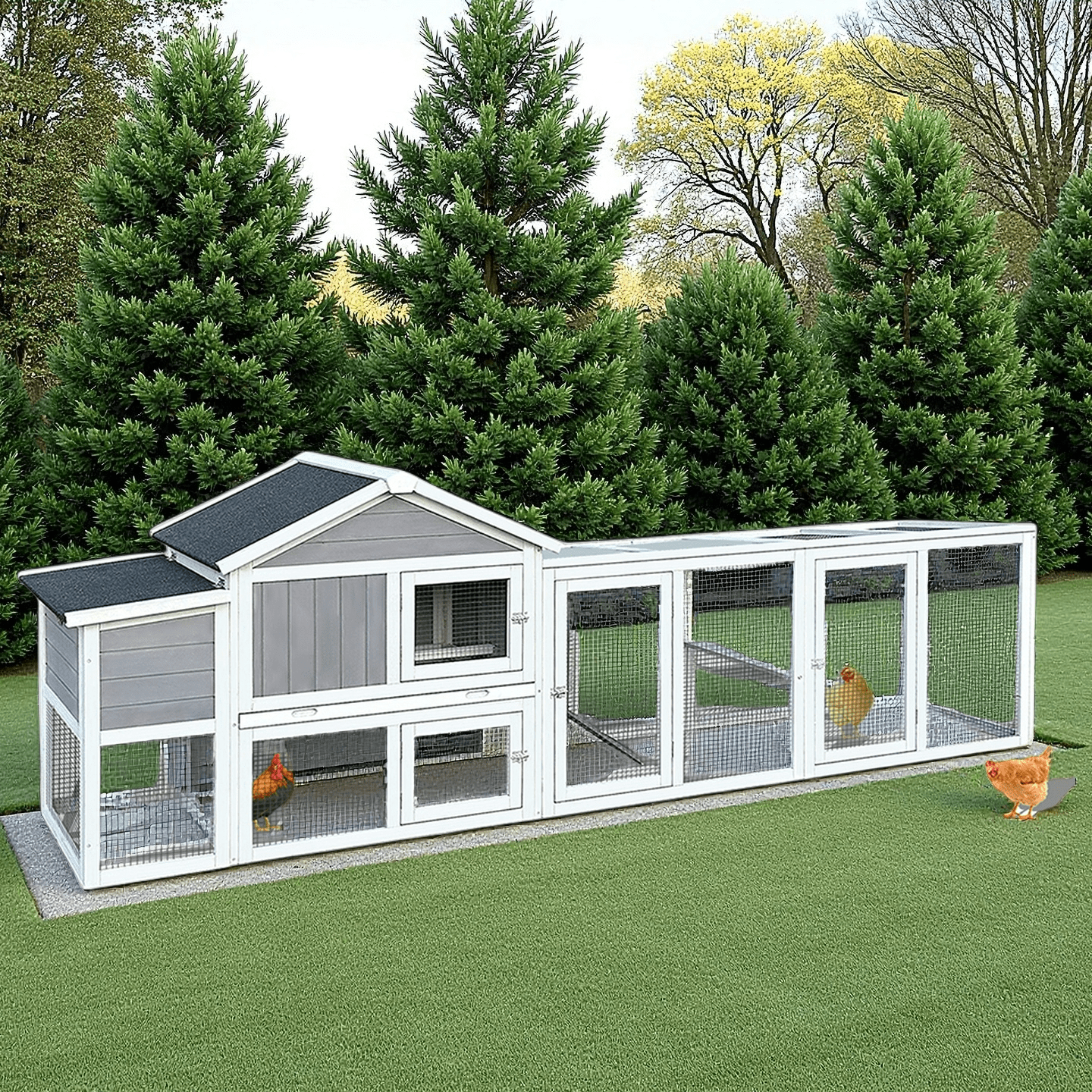 - 1. SOLID FIR WOOD BUILD & WEATHERPROOF ROOF - Built with solid fir wood and coated in eco-friendly paint, this durable Chicken Coop is designed for year-round outdoor use. Its waterproof and anti-UV roof protects your pets from sun, wind, and rain, ensuring a dry and shaded space while enhancing the structure’s lifespan.