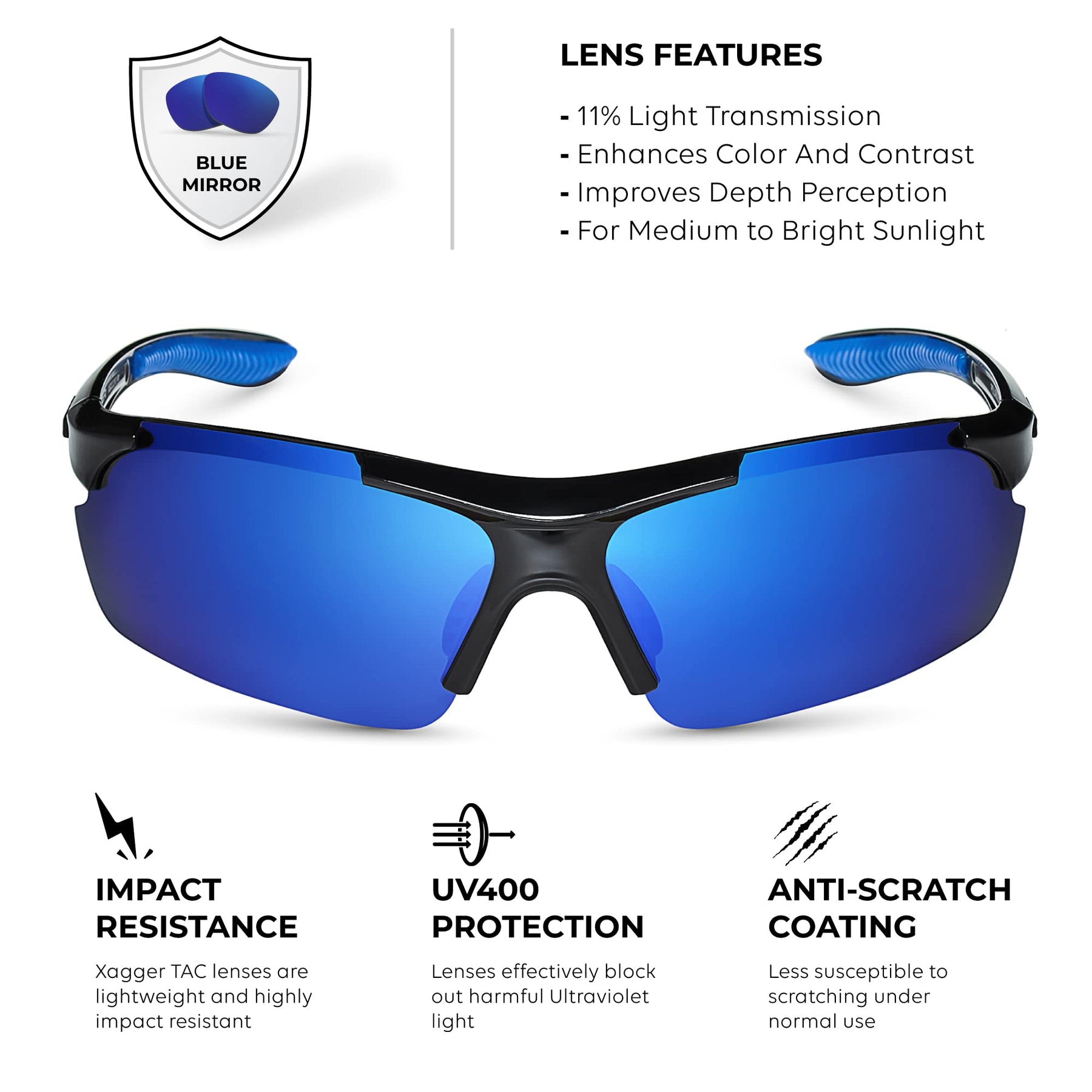 - IMPACT-RESISTANT TR90 FRAME – Experience the comfort and durability of XAGGER’s quality frames! Made from ultra-light and flexible TR90 with a sporty wrap-around design, our sports shades for men and women feature non-slip rubber ear tips and nose pads for added comfort.
