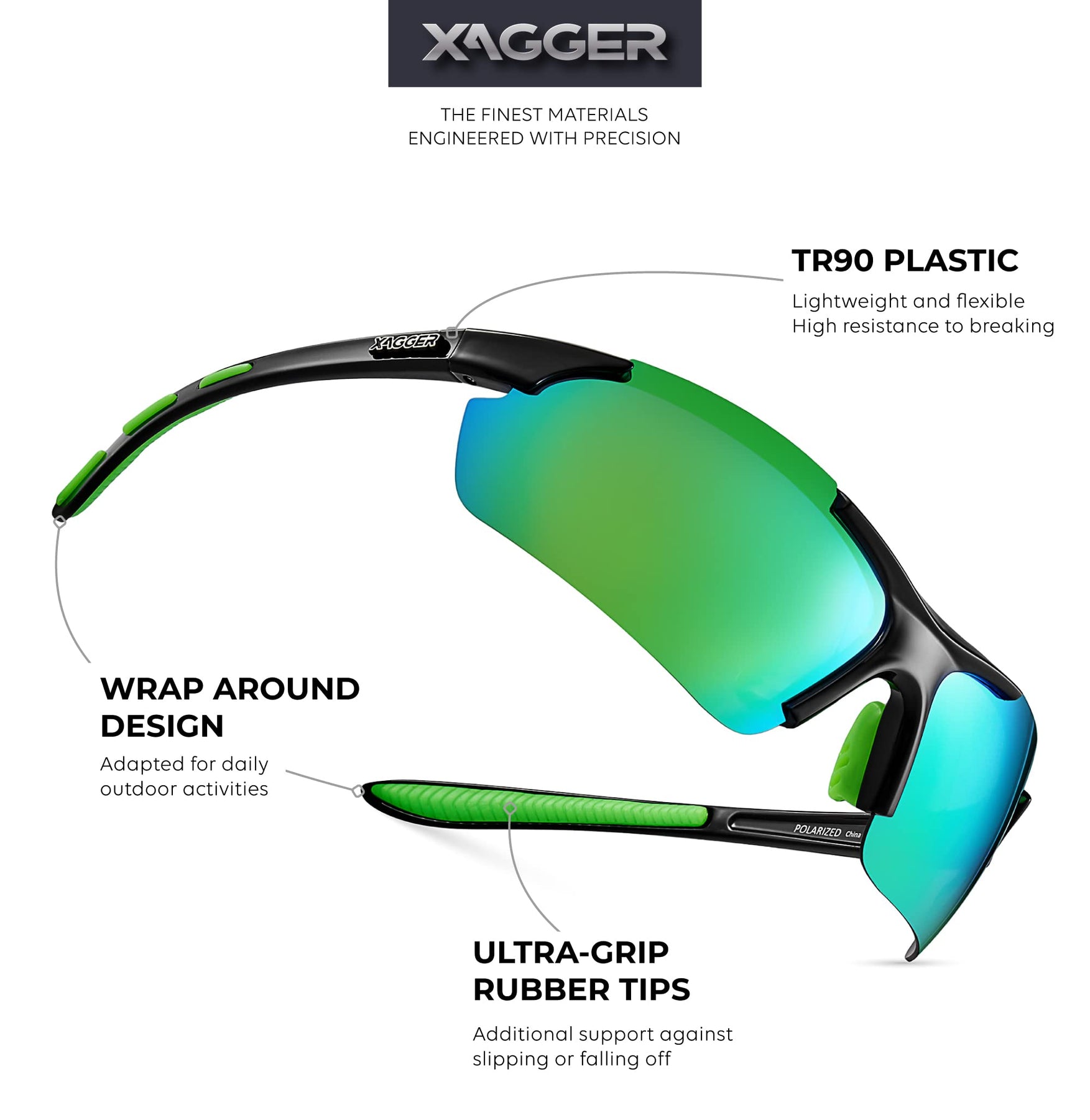 • IMPACT-RESISTANT TR90 FRAME – Experience the comfort and durability of XAGGER’s quality frames! Made from ultra-light and flexible TR90 with a sporty wrap-around design, our sports shades for men and women feature non-slip rubber ear tips and nose pads for added comfort.