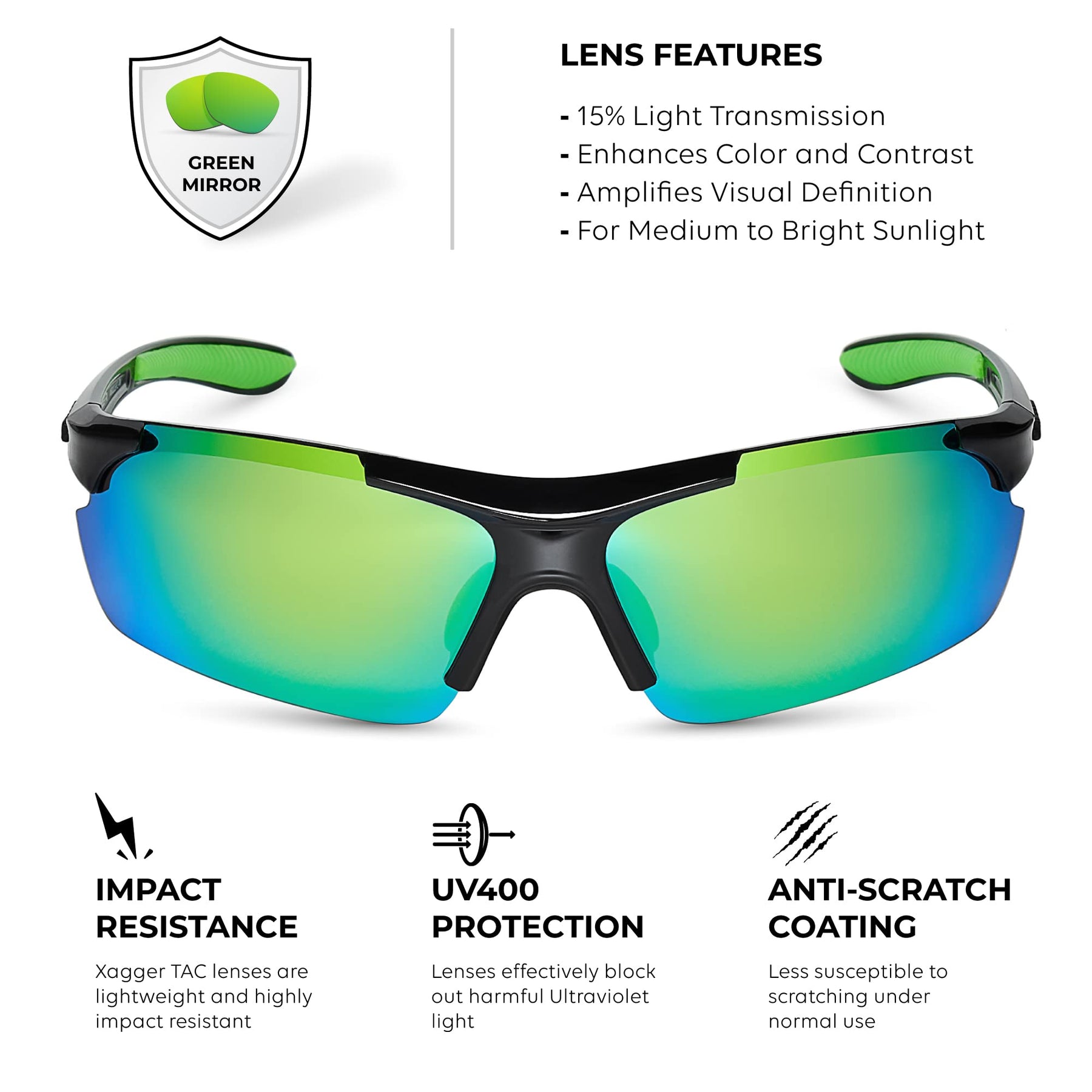• 1.1MM TAC POLARIZED LENSES – Forget about discomfort from that annoying glare with our wrap-around sports sunglasses for men and women! The XAGGER polarized lens enhances visual clarity and eliminates sun glare, protecting your eyes during any outdoor activity.