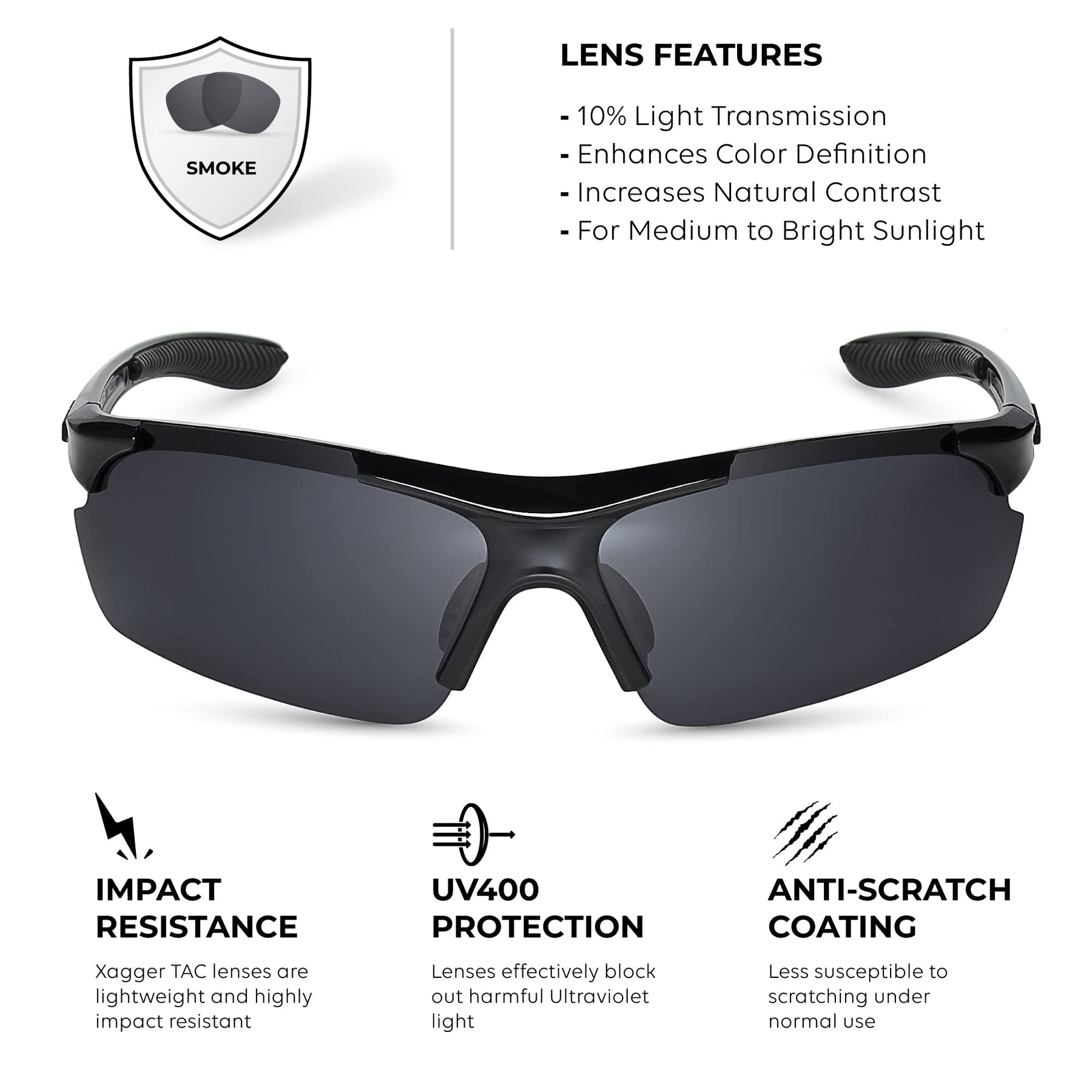 • 1.1MM TAC POLARIZED LENSES – Forget about discomfort from that annoying glare with our wrap-around sports sunglasses for men and women! The XAGGER polarized lens enhances visual clarity and eliminates sun glare, protecting your eyes during any outdoor activity.