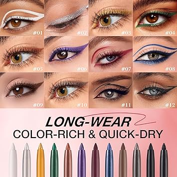 LANGMANNI 12Pcs Metal Colorful Eyeliner Pencil Set - Matte & Shimmer Eye Makeup,Smooth Use Long-Lasting Waterproof