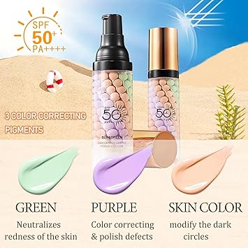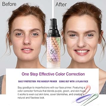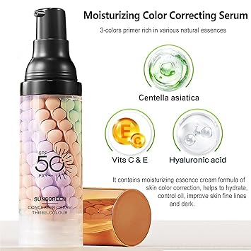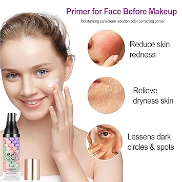 Primer for Face Before Makeup, SPF 50 Sunscreen Isolation Cream, One Step Color Correcting & Oil Control, Moisturizing, 3 In1 Corrector Facial Serum, Radiance Skin