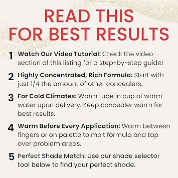 • Read This For Best Results - Use only 1/4 the amount of typical concealers; warm on fingers or a palette until it melts for flawless application. Use our shade selector tool to find your perfect match. For cold climates, keep the product warm before use, and visit our video section for a step-by-step tutorial.
