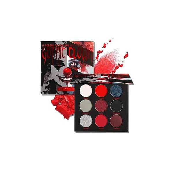 • 🩸【GOTHIC CLOW HALLOWEEN MAKEUP PALETTE SUIT FOR ALL OCCASIONS】 —— Professional Halloween makeup kit blood red black powder goth eyeshadow palette. Perfect for Day of the dead, carnivals, festivals, campfire or theme parties, SFX makeup,stage performances. Easily create crown, Joker, costume, skeleton blood red Devil cosplay looks. Goths, clowns, mimes, superhero designs, Halloween costume theme, killers creating zombie, vampire monsters and other gory scene makeup,Christmas candy cane makeup...