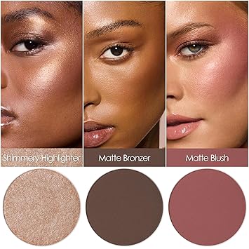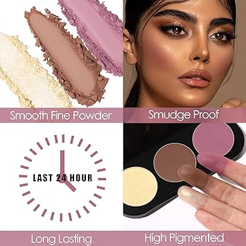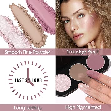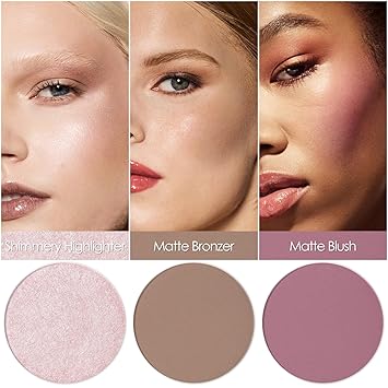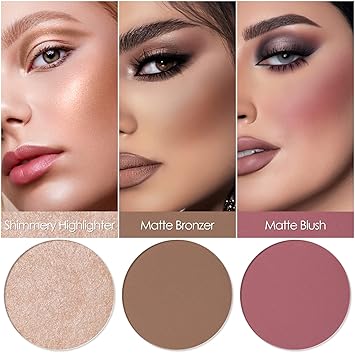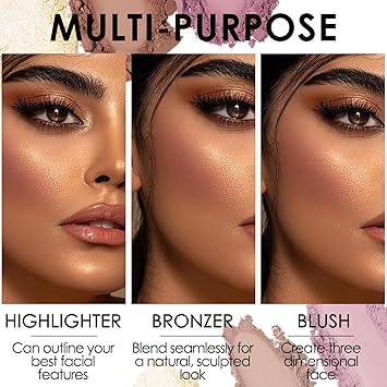 - 【3 in 1 MAKEUP PALETTE】 This multifunctional contour kit includes blush,highlighter and bronzer, with the texture of matte and shimmer, which can create different styles of makeup.