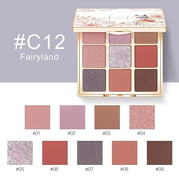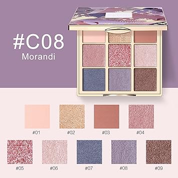 Catkin Eyeshadow Palettes 9 Blendable Shades Smooth Long Lasting Matte and Glitter Eye Makeup Highly Pigmented C08 Morandi