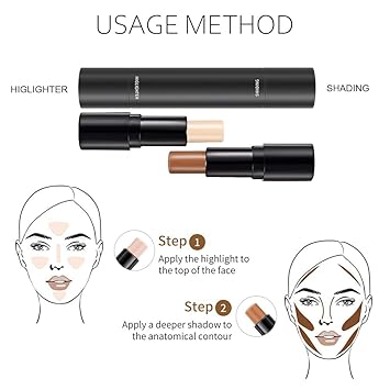 - [Brightens & Shades]It's 2 Colors Stick give a multi-dimensional sculpted look, Gently sweep the stick over cheekbones, brow bones, and temples, forehead, chin or anywhere you need to light or shades,perfectly balances cool and warm tones in the high points of the face to bring life and light to your makeup.