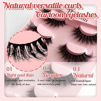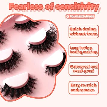 Strip Lashes - Faux Mink Eyelashes Vegan Weightless Fluffy Reusable Mink-Like for Vivid 3D Effect Easy to Apply False Extensions