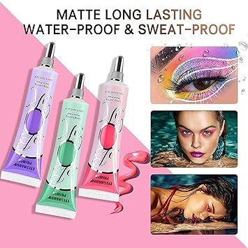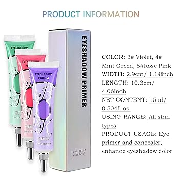 Package Includes: 3 X Eyeshadow Primer (Violet & Mint Green & Rose Pink)