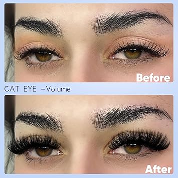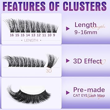 Pre-made Cat Eye Lash Extension Kit Clusters 9-16mm Wispy Cluster Eyelash 80D+100D Individual Eyelashes with Bond and Seal, Tweezers by Geeneiya