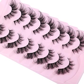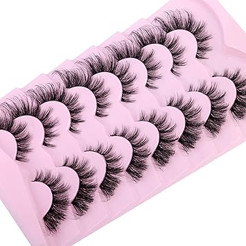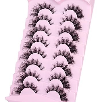 Lashes Wispy False Eyelashes Fox Eye Fake Fluffy Cat Faux Mink Strip Natural Look Clear Band Pack by GVEFETIEE 8 Pairs