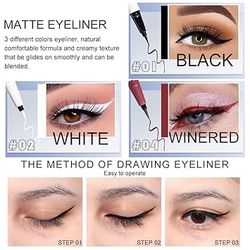 evpct 3Pcs White Red Black Matte Waterproof Colored Eyeliner Liquid Eye Liner Color Set Long Lasiting Colorful lapiz delineador de ojos contra el agua blanco para colores 1+3+9