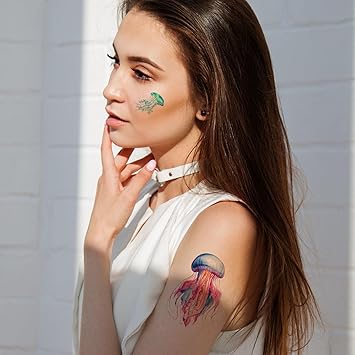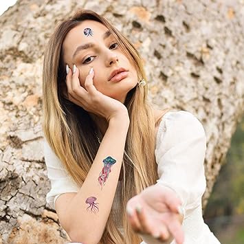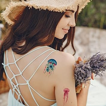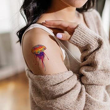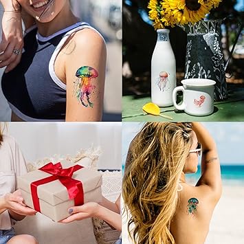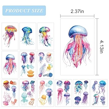 40 Pieces Jellyfish Temporary Tattoos, Watercolor Under The Sea Ocean Fake Tattoo Stickers for Woman Kids Birthday Party Favor Decorations Supplies, Hand Arm Shoulder Body Art