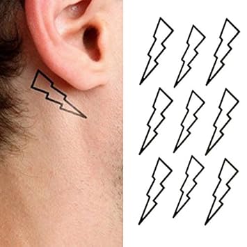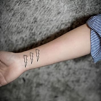 Small Cute Temporary Tattoo Sticker Set of 2 - Minimalist Geometric Lightning Simple Totem Symbols Designs for Hand Neck Face Wrist Finger, Waterproof Fake Body Art