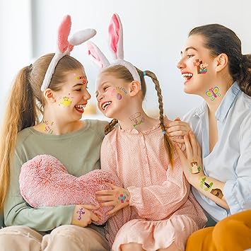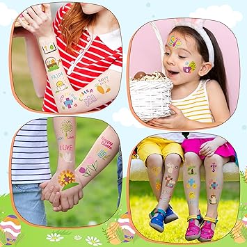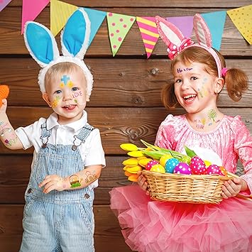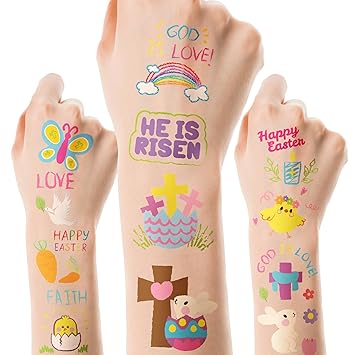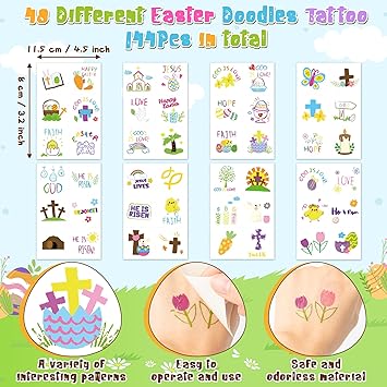 ANGOLIO 144Pcs Easter Doodles Temporary for Kids, Bible Tattoos Stickers Bunny Tattoos, Christian Religious Cross Waterproof Body Party Favors