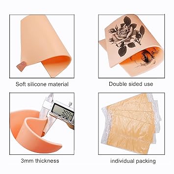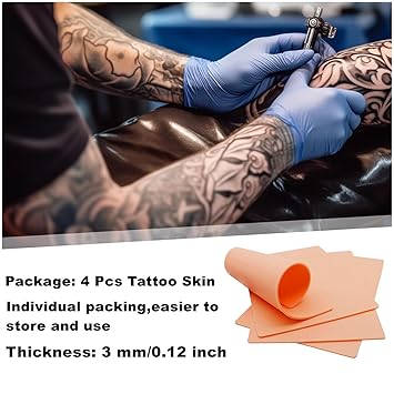 What You Get:Your package includes 4 pieces 3mm tattoo fake skin for beginners and experienced artists, the size of each practice skin is about 8x6inch. Each tattoo practice skin is individually packaged
