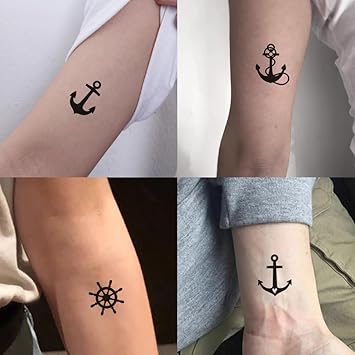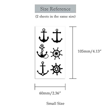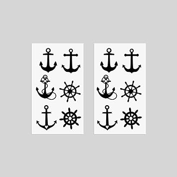Small Cute Temporary Tattoo Sticker Set of 2 - Black Rudder Anchor Totem Designs for Hand Neck Face Wrist, Waterproof Fake Body Art, Simple & Modern Unisex Skin Decals