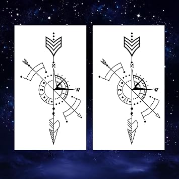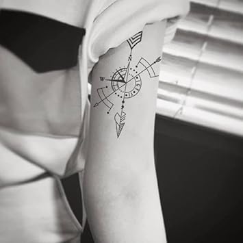 Small Cute Temporary Tattoo Sticker Set of 2 - Minimalist Geometric Arrow Line Compass Designs for Hand Neck Face Wrist, Waterproof Fake Body Art, Simple & Modern Unisex Skin Decals