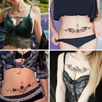 27 Sheets Sexy Temporary Tattoos for Women Long Lasting Tattoo Stickers Kit Chest Abdomen Navel Fake Makeup Art Apply and Girl