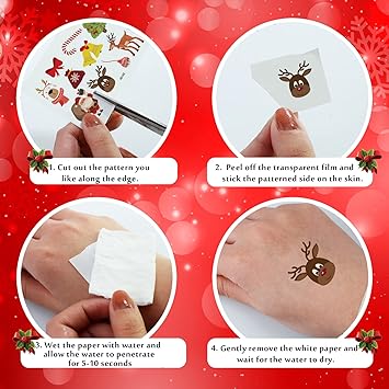 - ️ EASY TO USE - The tattoos are made with water transfer technology. You only need to soak the sticker on your skin with a small amount of water for 5-10 seconds, and the tattoo can be firmly attached to the face, neck, arms, legs, ankles these smooth skin surfaces.