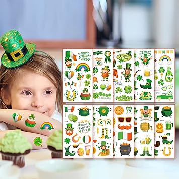 - ️ SPECIAL HOLIDAY TATTOOS - These temporary tattoos are ideal makeup for your family and friends on St. Patrick's Day Party or Parade. Both kids and adults love to stick these tattoos on their face or hands, decorating for your costume in special holidays, to bring you a different party time.