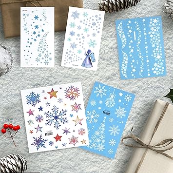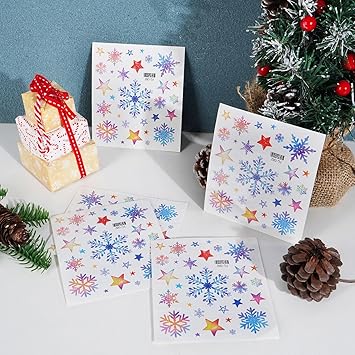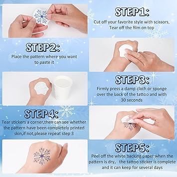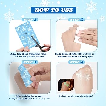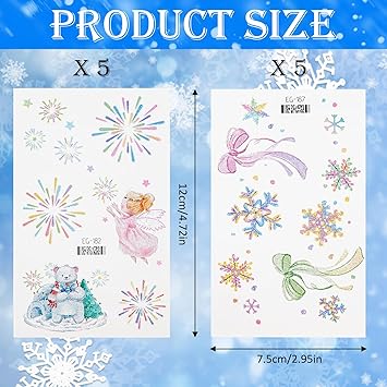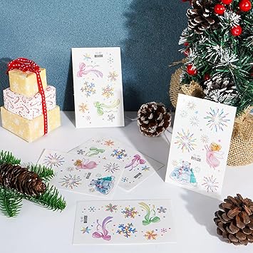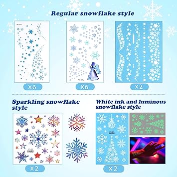 18 Sheets/1900pcs Snowflakes Temporary Tattoos, Winter Blue White Frozen Glitter Tattoo for Body Face Kids Women Christmas Party Decorations Supplies- Small Style