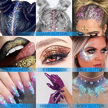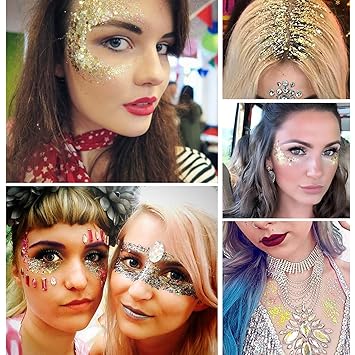 Glitter Gel with Face Rhinestones Christmas Sequin, Body Sequins Shimmer Liquid Eyeshadow, Chunky for Hair Nails, Gold Sparkling Party Makeup Women