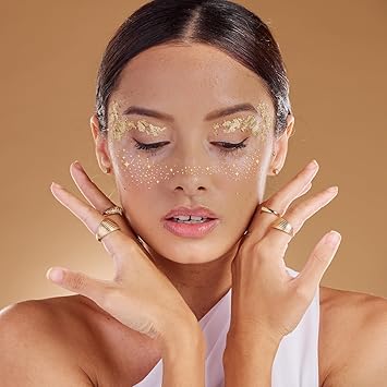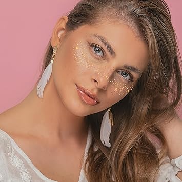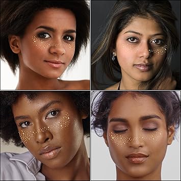 6pcs Face Stickers, Sparkle Stardust Speckle Makeup Patches Cute Gold Freckles Shiny Temporary Tattoos for Women Dancer Costume and Party Accessory