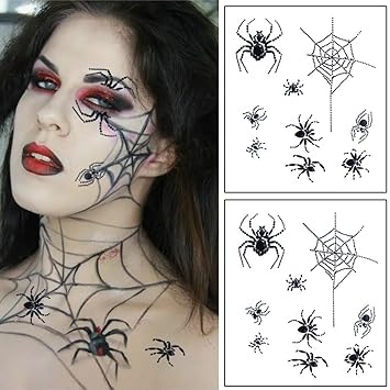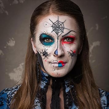 5D Spider Face Gems Jewels Tattoos for Halloween, Day of the Dead Crystal Stones Body Makeup Stickers (Large, Count, 2)