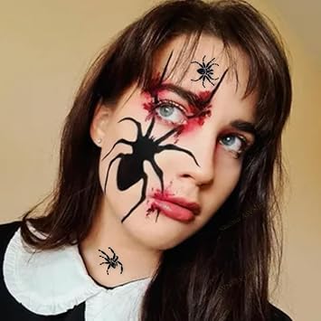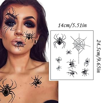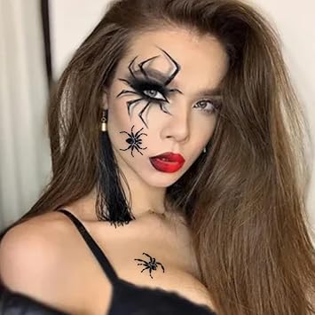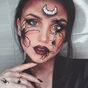 Spider Face Gems Jewels Tattoos for Halloween, Day of the Dead Face Temporary Spider Tattoos Rhinestone Crystal Stones Body Gems Makeup Stickers for Halloween Festival Rave Party Outfit
