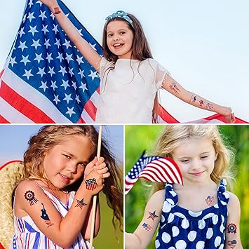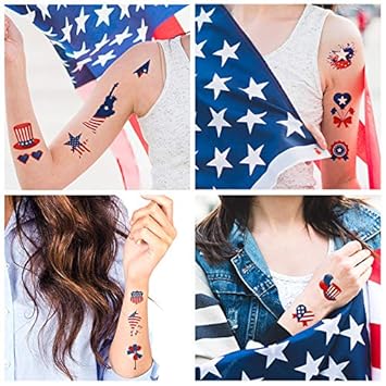 4th of July Temporary Tattoo Independence Day American Flag Red White Blue Design Body Art Patriotic Stickers for Theme Party Memorial Labor Celebrations Decor Supplies(10 Sheets)