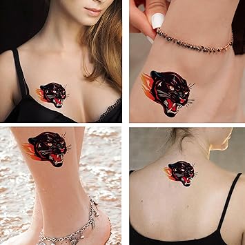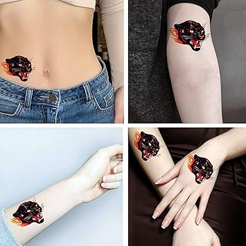 6 Sheets Fake Tattoos Set Illustration of a Black Panther with Angry Face Expression Temporary suitable for Adult Women Men Children Boys and Girls