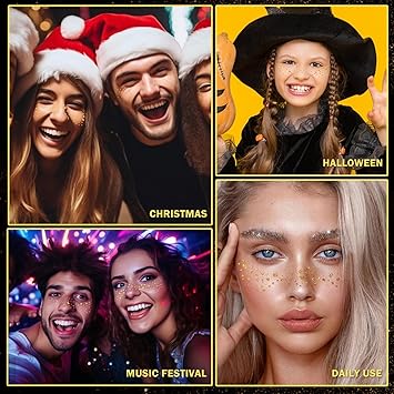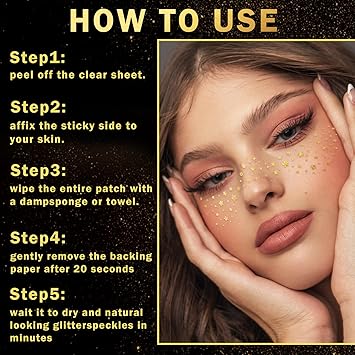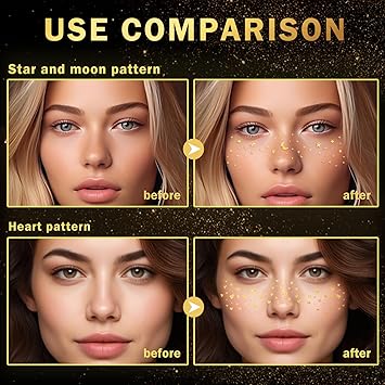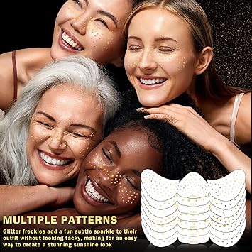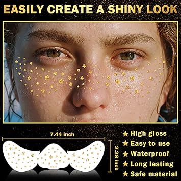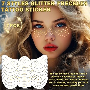 7 Styles Glitter Freckles Face Tattoo,Sparkle Gold Temporary Tattoos for Women,Waterproof Faux Music Singer Party Halloween Christmas Makeup
