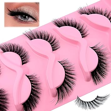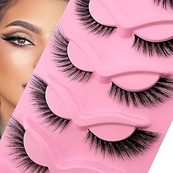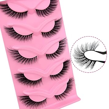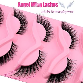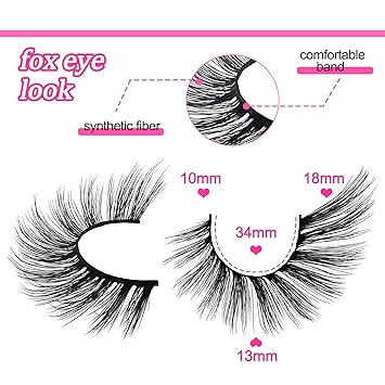 Fox Eye Lashes Wispy Eyelashes 18mm Cat-Eye Angel Wing Faux Mink False Natural Look 5 Pairs pack(XF05), black
