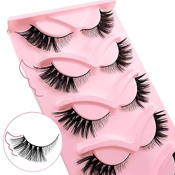 5 Pairs Cat Eye Natural Look False Eyelashes, Faux Mink Flu-ffy Wispy Fake Lashes, Cat-Eye Lashes (5-9)