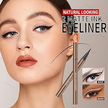 KYDA 2 Colors Liquid Eyeliner, Black Brown Matte Tint, Ultra Fine Tip, Lasting Pigment Eyeliner Pencil, Silky Smooth Formula, Quick Drying