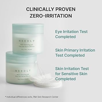 NEEDLY Mild Cleansing Pad, Makeup Remover for Sensitive Skin, Triple Deep Cleansing, Barrier Care with Only Two Surfactants & Panthenol, Extra-Large Soft Vegan Korean Skincare