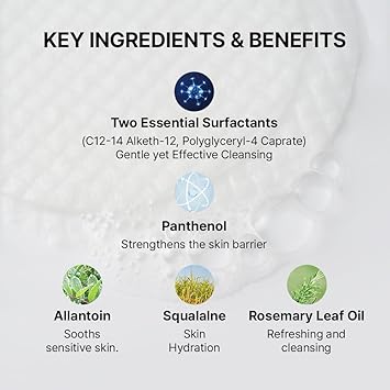 • DEEP, LASTING HYDRATION AFTER CLEANSING : Formulated with squalane, allantoin, and rosemary leaf oil to hydrate, soothe sensitive skin, and refresh without leaving it feeling stripped.